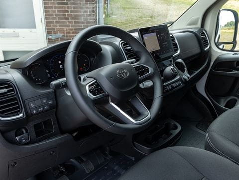 Der Toyota Proace Max bietet einen komfortablen und funktionalen Innenraum, der auf aus praktischen Gründen. Der Laderaum des Transporters ist so konzipiert, dass er den Anforderungen entspricht. Bedürfnisse von Fachleuten, mit einem Ladevolumen von bis zu 17 Kubikmeter und 1500 kg. Der Proace Max ist außerdem mit Systemen für fortschrittliche Sicherheitsmerkmale, darunter belüftete Scheibenbremsen und Zahnstangenlenkung elektrisch und garantiert so ein reibungsloses und sicheres Fahrerlebnis.