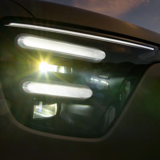 Sekä smart #5:n ulko- että sisätilat ovat Mercedes-Benzin suunnittelemia. Ulkopuoli erottuu vahvalla, laatikkomaisella muotoilulla ja ulkoiluun suunnitelluilla ominaisuuksillaan. Tyylikäs ulkonäkö, jonka selkeästi tunnistaa smartiksi, #5 vangitsee luonnossa seikkailun olemuksen.