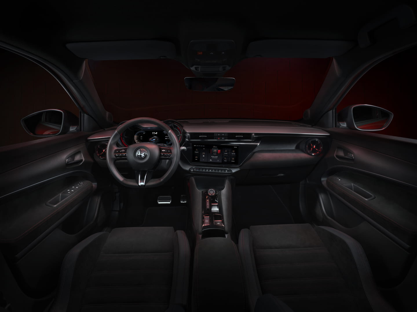 Binnenin pakt de Junior uit met de voor Alfa Romeo typische halfronde dashboardoverkappingen, maar de aparte tellers zijn vervangen door een digitaal kleurenscherm. Het relatief kleine infotainmentscherm staat licht naar de bestuurder gebogen. Helaas overheersen harde plastics, maar de afwerking is degelijk. Het plaatsaanbod is doorsnee voor het segment, net als de kofferinhoud (400 liter).
