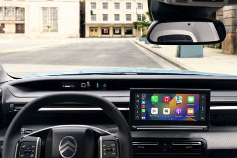 Op de snelweg voelt hij zich minder thuis. Daar gaat hij ook flink wat meer verbruiken. Voor lange trips leent de ë-C3 zich dus zeker niet, tenzij je er geen probleem van maakt regelmatig een laadpaal te moeten opzoeken. Snelladen kan daar dan wel tot 100 kW, dat is voor dit type EV anno 2025 marktconform. De geïntegreerde lader is goed voor 7,4 kW, mits een supplement wordt het er eentje van 11 kW.