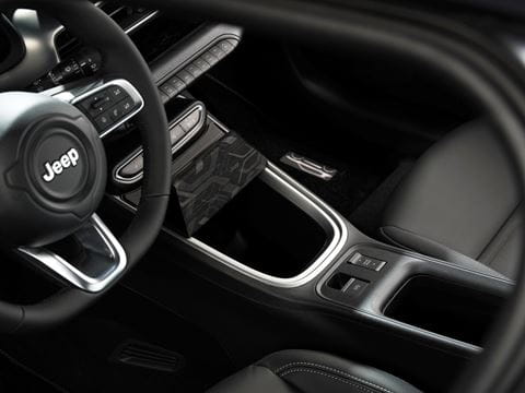 Het interieur heeft een groot dashboard dat op stuurhoogte is afgewerkt in dezelfde kleur als de auto. Daarnaast zit een digitaal instrumentenpaneel van 10,25 inch groot. Met dat systeem regel je alles: media, radio, telefoon, navigatie, airco en allerlei auto instellingen. Natuurlijk heeft de Jeep Avenger ook Apple CarPlay en Android Auto. Er is ook nagedacht over slimme opbergvakken. Tussen de ventilatieroosters en de bedieningsknoppen van het infotainment zit een groot vlak waar je wat spullen kwijt kan. Ook in de middenconsole zit een groot opbergvak.