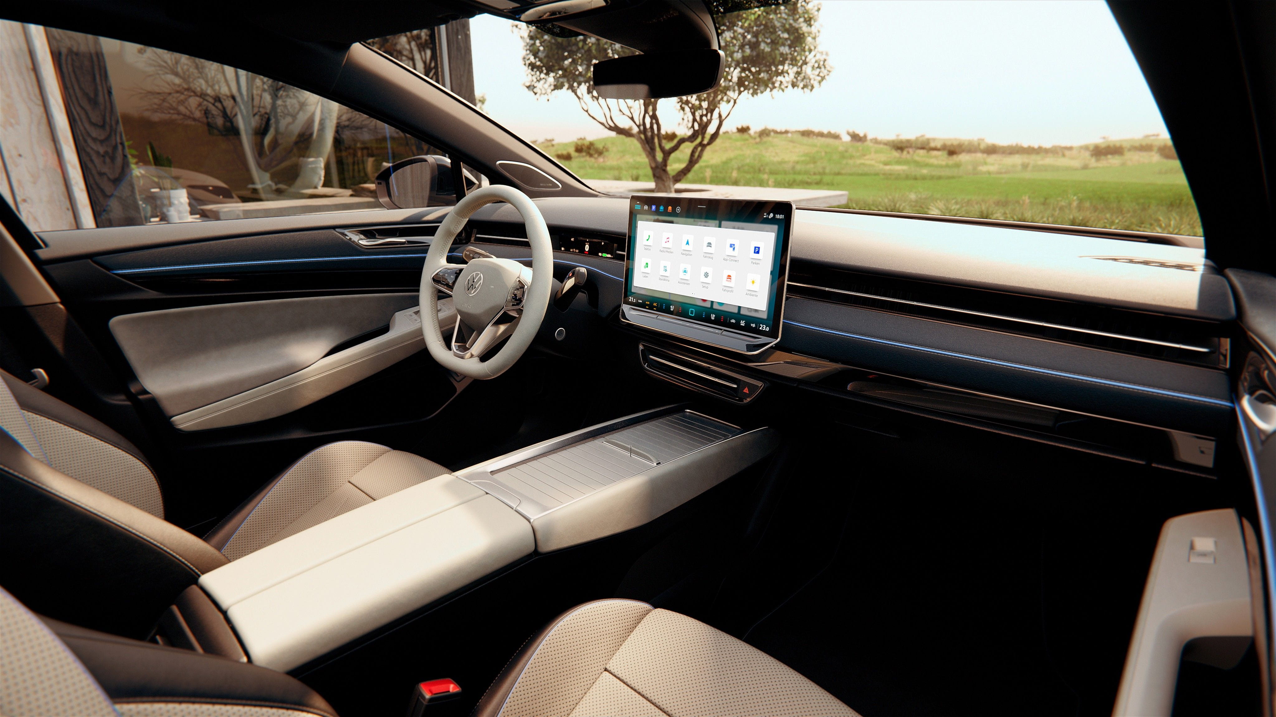 Het design van de Volkswagen ID.7 is stijvol. Zo heeft de ID.7 een schuine daklijn en subtiele inkepingen aan de zijkant. De achterlichten zijn simpel voor een verfijndere uitstraling. Het interieur van de auto is ruim en heeft comfortabele stoelen met genoeg beenruimte. Sommige uitvoeringen hebben zelfs voorstoelen met massage- en klimaatfunctie. Met de klimaatfunctie verwarm je de stoel tijdens de koele wintermaanden. Terug van dagje strand? Of zit je in een warme auto? Zet de koelfunctie aan en geniet van een koude stoel. Comfortabeler dan dit gaat het niet worden, toch?